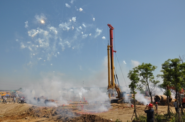 本次施工的首根樁基為方興大道主線橋P6-3。為保質(zhì)量、保安全的完成首根樁基施工,項目部提前謀劃,精心準(zhǔn)備,對施工過程中可能出現(xiàn)的問題制定專門的預(yù)防措施,對各重難點工序進(jìn)行合理安排,技術(shù)人員全程現(xiàn)場指導(dǎo)施工。在大家的共同努力下順利完成了首根樁基的開鉆,并于當(dāng)天完成灌注。