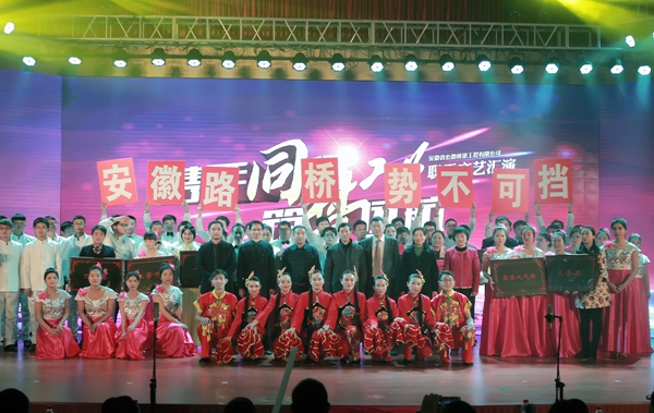 演出現(xiàn)場華燈璀璨,座無虛席,氣氛喜慶熱烈。匯演正式開始前,公司董事長、總經(jīng)理孫學(xué)軍發(fā)表了熱情洋溢的致辭。他首先代表公司向蒞臨現(xiàn)場的嘉賓及長期以來堅(jiān)持在公司各個(gè)崗位的員工及家屬,致以誠摯的問候和新春的美好祝愿,向默默奉獻(xiàn),為路橋事業(yè)奠基的前輩們致以崇高的敬意。指出,2015年,是宏觀形勢錯(cuò)綜復(fù)雜的一年,也是公司成績斐然的一年,在建工集團(tuán)的正確領(lǐng)導(dǎo)下,全體員工凝心聚力,開拓奮進(jìn),取得了驕人的業(yè)績。充滿機(jī)遇和挑戰(zhàn)的“十三五”已經(jīng)開局,全體路橋人要秉承優(yōu)良傳統(tǒng),凝心聚力,同舟共濟(jì),譜寫安徽路橋新的輝煌。
