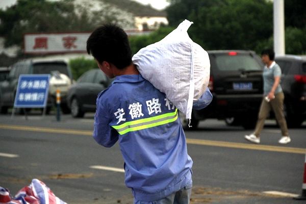 風雨同舟,眾志成城。在抗洪搶險現(xiàn)場,黨員突擊隊、青年突擊隊、工人先鋒號、青年文明號……一面面鮮紅的旗幟牢牢的樹立在一線“戰(zhàn)場”。公司領導班子成員親臨現(xiàn)場,靠前指揮,統(tǒng)籌謀劃抗洪搶險方案,和全體員工并肩協(xié)同作戰(zhàn)。在環(huán)湖大道上,近兩千名員工分成多支作業(yè)隊伍,分頭推進,集中突破。在搶險隊伍中,有不少剛剛加入公司的年輕人,他們肩扛手提,裝袋、搬運、填筑,汗水浸透了衣服,實在干不動了,席地而坐或杵著鐵鍬稍作休息,隨后繼續(xù)投入戰(zhàn)斗;一些已經(jīng)奮戰(zhàn)在一線幾天幾夜的老員工,顧不上身心疲憊,堅持留在一線,為年輕員工樹立了榜樣。從外地連夜趕來的支援隊伍,來不及休息,迅速加入,配合突擊,有力地推進了搶險進度。