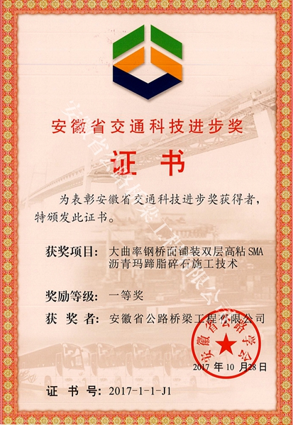 近年來(lái),公司積極實(shí)施創(chuàng)新驅(qū)動(dòng)發(fā)展戰(zhàn)略,充分依托省級(jí)技術(shù)中心,重點(diǎn)立足新設(shè)備、新材料、新工藝運(yùn)用,大力推進(jìn)科技創(chuàng)新,持續(xù)加強(qiáng)科技成果轉(zhuǎn)化,以科技創(chuàng)新助推企業(yè)轉(zhuǎn)型發(fā)展、跨越發(fā)展、高效發(fā)展,取得了良好成績(jī)。此次兩項(xiàng)成果榮獲省公路學(xué)會(huì)交通科技進(jìn)步獎(jiǎng)一等獎(jiǎng),充分體現(xiàn)了在公路工程特級(jí)資質(zhì)新發(fā)展平臺(tái)上公司科技創(chuàng)新實(shí)力的進(jìn)一步增強(qiáng)。
