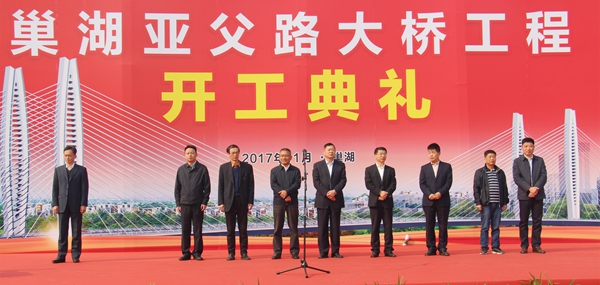 11月8日上午9時58分,巢湖市亞父路大橋項目隆重舉行開工典禮,合肥市委常委、巢湖市委書記胡啟生出席典禮并宣布項目正式開工。