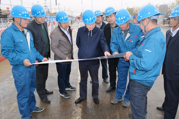 集團(tuán)公司總經(jīng)理助理、工程管理部主任童宗勝,公司董事長(zhǎng)、黨委書(shū)記、總經(jīng)理孫學(xué)軍,副總經(jīng)理錢申春等陪同。