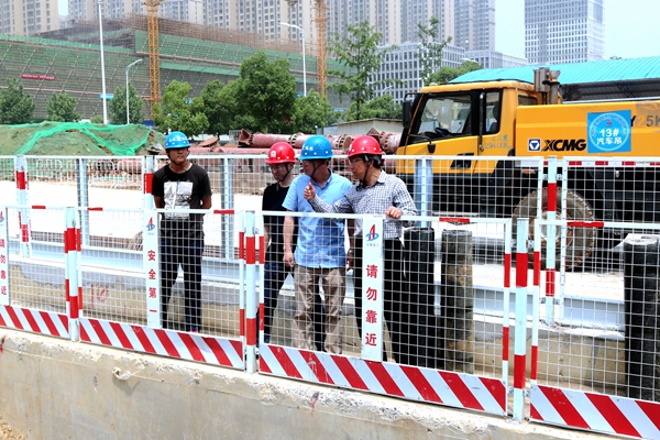王總一行先后實地查看了長寧大道站盾構(gòu)掘進現(xiàn)場和創(chuàng)新大道站車站主體施工。對當(dāng)前施工進度、安全文明施工、工程質(zhì)量等方面工作情況,王總均給予了肯定,并要求繼續(xù)加強安全質(zhì)量管理。