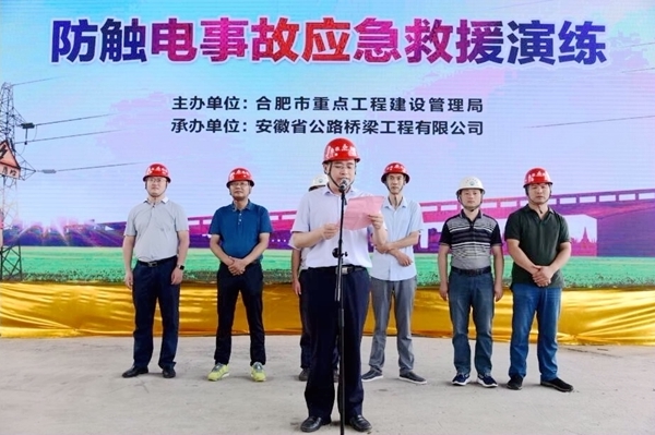 7月1日,由合肥市重點局主辦,公司承辦的防觸電事故應(yīng)急救援演練在阜陽北路項目成功舉辦。合肥市建委黨委副書記、副主任陳傳東,長豐縣副縣長王健,市重點局副局長鄭浩,公司黨委委員、副總經(jīng)理錢申春到場觀摩指導(dǎo)。