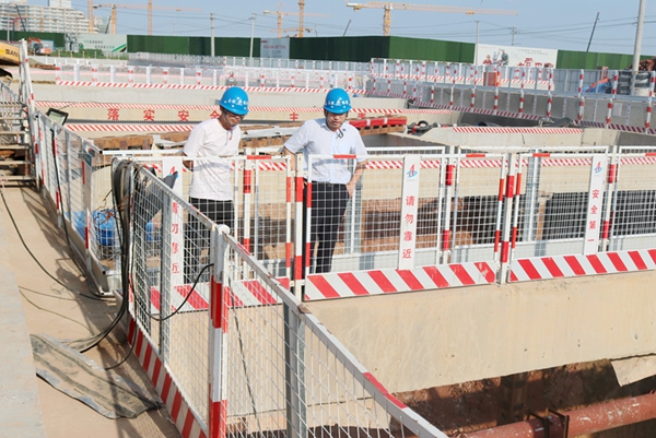 錢總先后來到長寧大道站、創(chuàng)新大道站施工現(xiàn)場,實地調(diào)研指導工程施工,并詳細聽取了項目負責人對工程進度、安全質(zhì)量管控、盾構(gòu)掘進施工等情況的工作匯報。錢總強調(diào),要提前謀劃,精心組織,控制好節(jié)點工期,充分發(fā)揮主觀能動性,安全優(yōu)質(zhì)高效地推進項目建設(shè)。
