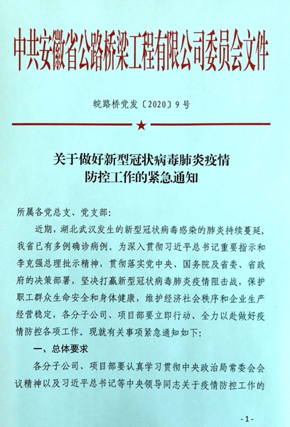 1月27日,公司黨委發(fā)布《關(guān)于做好新型冠狀病毒肺炎疫情防控工作的緊急通知》,對公司疫情防控工作進(jìn)行具體部署,要求各分子公司、項目部立即行動,全力以赴做好疫情防控工作。同步組織成立公司疫情防控工作領(lǐng)導(dǎo)小組,由主要負(fù)責(zé)人擔(dān)任組長,統(tǒng)籌負(fù)責(zé)公司疫情防控指揮、協(xié)調(diào)工作;同時,所屬各生產(chǎn)單位也組織成立了疫情防控工作領(lǐng)導(dǎo)小組,全面加強(qiáng)對新型肺炎疫情防控工作的領(lǐng)導(dǎo)。實行領(lǐng)導(dǎo)班子成員輪流帶班制度,實時做好疫情防控指揮;建立疫情防控工作群,加強(qiáng)信息溝通和日常工作調(diào)度;各項目明確聯(lián)絡(luò)員,對疫情防控信息每日進(jìn)行報告。