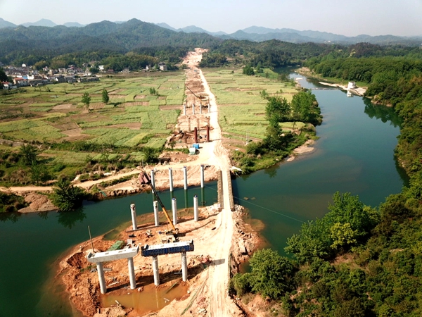 3月25日復(fù)興橋下部結(jié)構(gòu)基礎(chǔ)完成,3月31日蓮花山隧道右線削竹式洞門施工完畢,4月4日梁場(chǎng)首片梁板完成澆筑,4月5日路基一隊(duì)與二隊(duì)清表完成、便道實(shí)現(xiàn)貫通,全線路基、隧道、橋梁工程多點(diǎn)發(fā)力,工程建設(shè)穩(wěn)步推進(jìn)。期間,受降雨影響,白洋河橋圩區(qū)遭到破壞,項(xiàng)目黨支部迅速成立應(yīng)急施工小組,全天駐點(diǎn)搶抓工期,目前白洋河水中墩已全部澆筑完畢,鋼便橋也已經(jīng)完成鋪設(shè),如期完成既定任務(wù),減輕了雨季到來(lái)前的施工壓力。