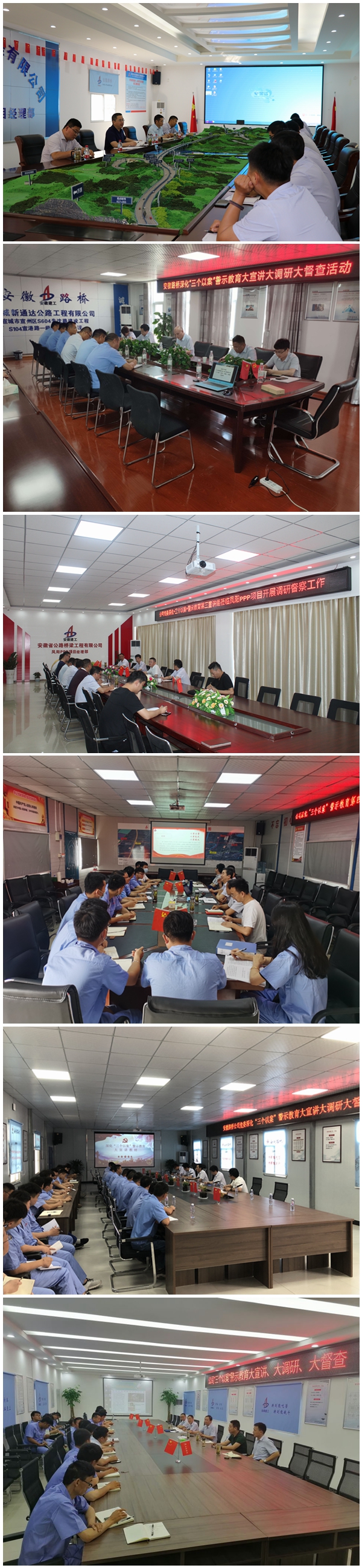 近日,公司黨委深化“三個(gè)以案”警示教育9個(gè)宣講組分別深入黃河特大橋項(xiàng)目、宣城PPP項(xiàng)目、蒙城PPP項(xiàng)目、明巢高速05標(biāo)等省內(nèi)外重點(diǎn)項(xiàng)目、偏遠(yuǎn)項(xiàng)目集中開展大宣講、大調(diào)研、大督查,宣講警示教育工作要求和典型案例,調(diào)研解決項(xiàng)目一線存在的困難和問題,廣泛聽取職工意見建議。