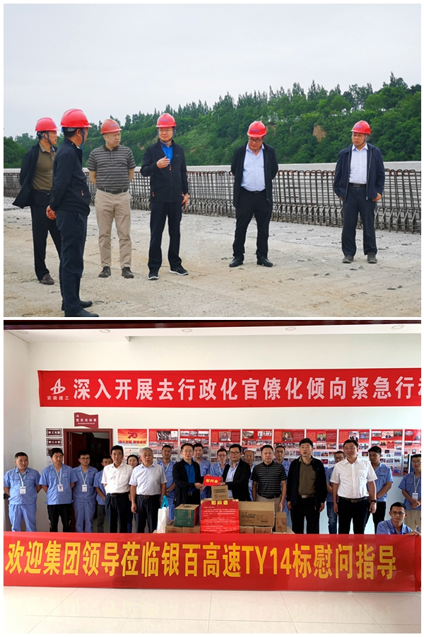 7月21日,建工控股黨委副書記、總經(jīng)理劉家靜一行到銀百高速TY14標調(diào)研指導(dǎo)工作,并進行“送清涼”慰問。