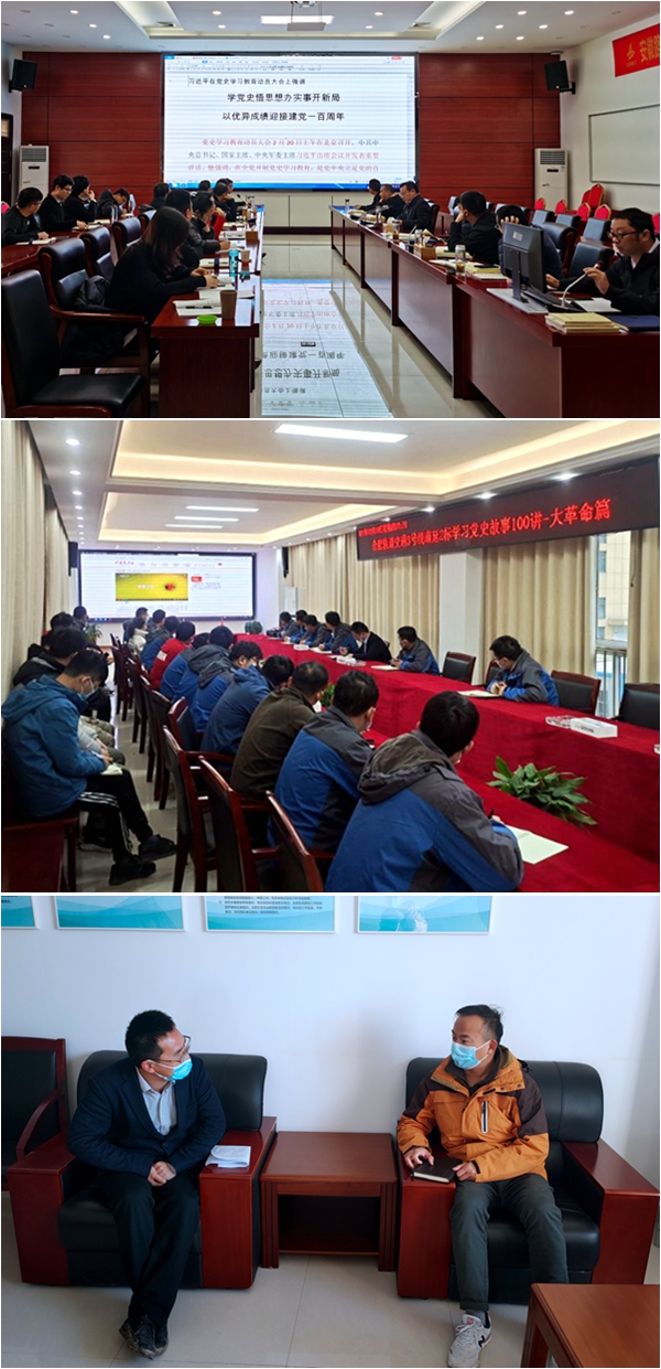 公司各級黨組織相繼召開黨史學習教育動員會,要求全體黨員要把思想和行動統(tǒng)一到中央、省委和集團黨委部署上來,高標準、高質量完成黨史學習教育各項任務,努力做到學史明理、學史增信、學史崇德、學史力行,以優(yōu)異成績迎接建黨100周年。