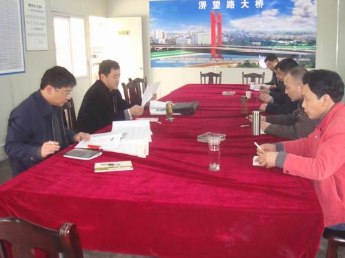 戴總一行深入施工一線,實地察看了大橋的建設情況,與現(xiàn)場技術人員和施工人員進行了親切的溝通交流。隨后,戴總一行在項目部會議室召開了座談會,就淠望路大橋施工方案、施工工序進行了詳細的剖析,并提出了具有建設性的指導意見。