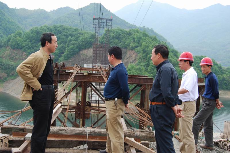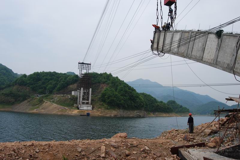 2009年4月30日上午10:30,寧靜的大別山革命老區(qū)金寨縣梅山水庫上空傳來了清脆的鞭炮聲,絢爛的禮花把青山綠水映襯得更加多姿。備受社會關(guān)注的金寨縣金桃大橋主橋第二孔,即桃?guī)X跨第一片重達75T的箱拱梁被緩緩吊起,在眾目凝視下穩(wěn)穩(wěn)就位,為“五.一”國際勞動節(jié)獻上了一份厚禮。這預示著金桃大橋又取得了一個實質(zhì)性的進展和階段性的勝利。金寨縣交通局張傳旭局長、王學軍副局長、總監(jiān)賈淳忠等在公司總經(jīng)濟師楊文柱的陪同下,現(xiàn)場觀看了整個吊裝過程。下午,金寨縣人大副主任石本德、縣委常委、常務(wù)副縣長趙權(quán)分別到場表示祝賀和慰問。