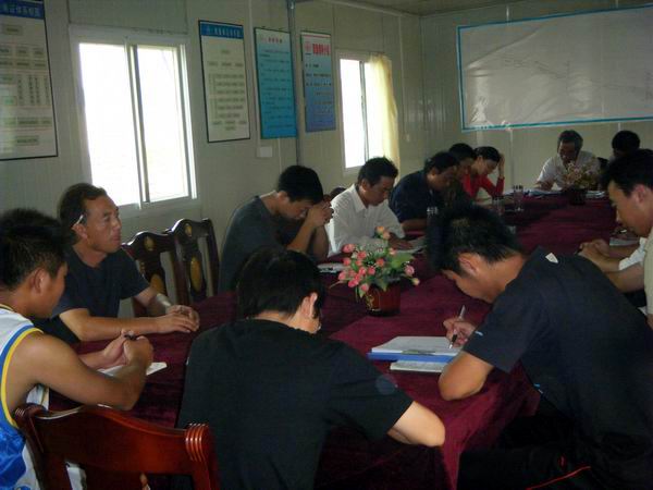 會上,杜經(jīng)理首先傳達了公司《關于作好國慶、中秋期間安全生產(chǎn)工作的通知》,接著回顧了最近幾次安全生產(chǎn)檢查情況,重點整頓了臨時用電、基坑圍護、機械設備持證上崗及高空作業(yè)幾個方面。