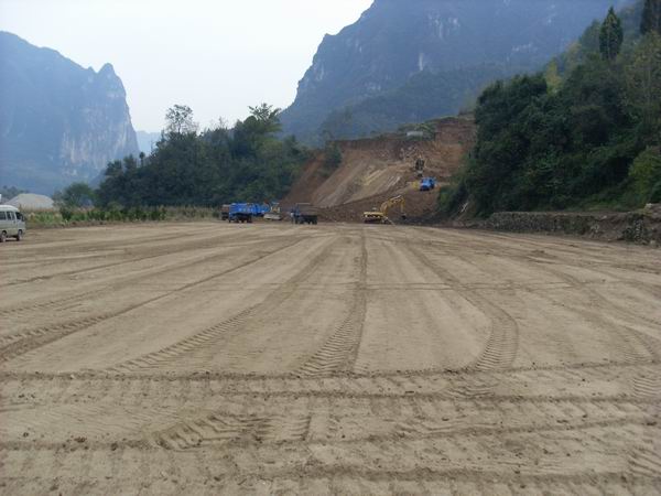 11月5日,位于K57+000的路基試驗(yàn)段正式開(kāi)始施工;同時(shí),標(biāo)段內(nèi)構(gòu)造物的施工也于5日正式開(kāi)工。至此,我標(biāo)段內(nèi)橋梁、路基、構(gòu)造物的施工已全面展開(kāi)。10月下旬我部開(kāi)始了標(biāo)段紅線(xiàn)內(nèi)的清表工作,經(jīng)過(guò)項(xiàng)目上多個(gè)部門(mén)十余天的努力,最終將一條翻越山嶺、穿越村莊的施工便道通到了路基試驗(yàn)段所在地,機(jī)械設(shè)備及車(chē)輛按時(shí)進(jìn)入指定地點(diǎn),為試驗(yàn)段的開(kāi)工做好充分準(zhǔn)備。