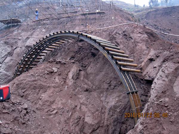 惡劣的自然環(huán)境和復(fù)雜的地方問題,使雨壩隧道進(jìn)洞前的籌備工作異常艱辛。項(xiàng)目經(jīng)理劉曉晗和總工胡學(xué)祥數(shù)次趕赴業(yè)主等單位,反映問題和請求解決問題,并請來各級安全監(jiān)理到施工現(xiàn)場協(xié)商施工隊(duì)住房場地的選擇點(diǎn)。地方辦負(fù)責(zé)人邵子俊同志幾乎整日奔波于縣指揮部、鄉(xiāng)政府、派出所、供電所之間……。功夫不負(fù)有心人,在大家多方面的努力下,最終住房場地通過了監(jiān)理安全的驗(yàn)收,其他標(biāo)段因村民堵路導(dǎo)致的交通問題、拆遷問題、搶挖煤問題得到解決,施工用電也通暢無阻。與此同時,施工隊(duì)方面完成所有機(jī)器設(shè)備的安裝和調(diào)試工作,前期所需鋼材均已全部進(jìn)場,各班組人員基本到位。現(xiàn)已完成左洞邊仰坡開挖和防護(hù),套拱施工、管棚施工正加班加點(diǎn)進(jìn)行施工,右洞也已進(jìn)入套拱施工階段;所有施工工序正有條不紊的進(jìn)行。至此,雨壩隧道進(jìn)洞前工作全部完成,同時也宣告了安徽路橋水盤項(xiàng)目的隧道工程取得了階段性的勝利。