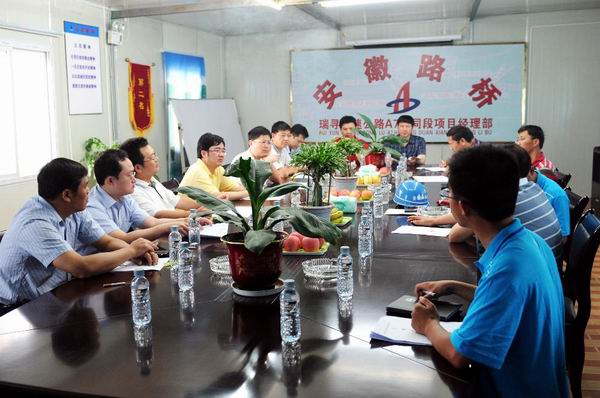 會上,投資集團(tuán)劉總肯定了我項目部在施工建設(shè)方面所取得的成績,認(rèn)為瑞尋A7標(biāo)項目部總體施工計劃好,施工組織能力強(qiáng),給整個工程的建設(shè)創(chuàng)造了良好的條件,也給兄弟標(biāo)段項目部施工建設(shè)起到了示范作用。同時希望安徽路橋項目部繼續(xù)鼓足干勁,在以后的安全生產(chǎn)和質(zhì)量管理各方面為瑞尋高速公路工程建設(shè)起到“標(biāo)兵”作用。