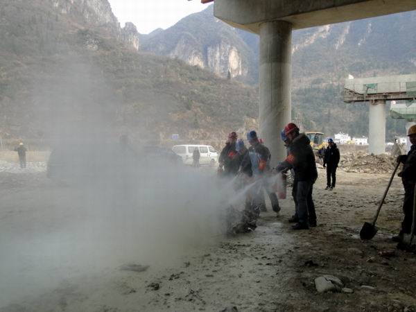 為加強(qiáng)冬季防火安全工作,1月16日,宜巴09標(biāo)在橋梁一工區(qū)組織進(jìn)行防火演練,以檢驗(yàn)并增強(qiáng)我部發(fā)現(xiàn)安全隱患、及時(shí)處理的應(yīng)急能力。本次演練由項(xiàng)目部分管安全工作的黨支部書記邵建新?lián)慰傊笓],安全部部長萬和國擔(dān)任現(xiàn)場指揮,項(xiàng)目總工、各工區(qū)區(qū)長和現(xiàn)場施工班組負(fù)責(zé)人到場參與演練。
