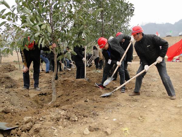 10日上午,項目黨支部書記邵建新、總工吳昊參加指揮部2011年在霧渡河互通的植樹造林活動,接力2010年植樹活動,再次種下三顆樹苗。11日,項目部購進(jìn)具有觀賞性、成活率較高的紅葉石欄幼苗50株,環(huán)保部組織全體人員一人一顆在路基工區(qū)k62+600處高邊坡段種植。盡管地形陡峭、取水極不方便,大伙兒積極克服困難,分工合作,運樹苗、挖坑、種樹、運水、澆水,有序進(jìn)行,經(jīng)過2小時努力,順利種下全部樹苗,為綠化宜巴、共建綠色家園貢獻(xiàn)力量。