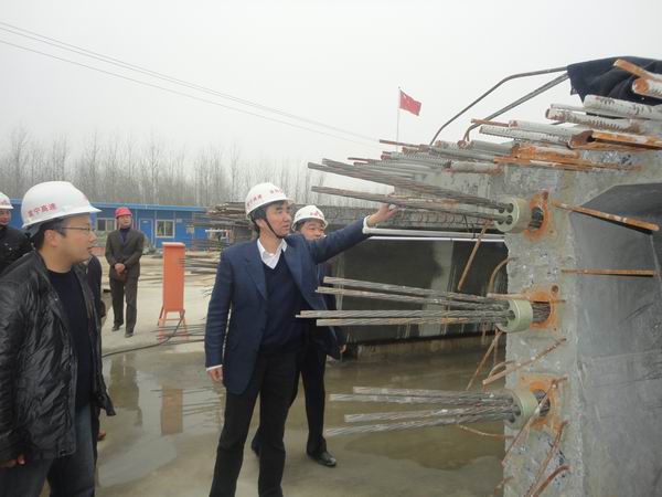 視察過(guò)程中,何站長(zhǎng)對(duì)我部預(yù)制梁場(chǎng)的施工質(zhì)量、工藝給予了充分的肯定和贊揚(yáng),通過(guò)察看安全警示牌、詢問(wèn)現(xiàn)場(chǎng)安全員,對(duì)我部安全工作的全面細(xì)致也豎起了大拇指,并對(duì)我安徽省公路橋梁工程公司表達(dá)了由衷的贊許。在肯定我們的工作成績(jī)的同時(shí),何站長(zhǎng)也要求我們要繼承和發(fā)揚(yáng)安徽省路橋公司的優(yōu)良傳統(tǒng),細(xì)化工作、進(jìn)一步提高工程質(zhì)量。