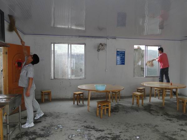 下午5點(diǎn),按照先前的分工,各部門的團(tuán)員都積極行動(dòng)起來。試驗(yàn)室負(fù)責(zé)餐廳生活區(qū),工程部、質(zhì)檢部負(fù)責(zé)宿舍樓,其余部門負(fù)責(zé)辦公走廊及前場活動(dòng)區(qū)域的衛(wèi)生打掃。清洗桌子,擦洗門窗、打掃走廊,清理枯枝敗葉,經(jīng)過兩小時(shí)的辛勤勞動(dòng),整個(gè)項(xiàng)目部煥然一新。