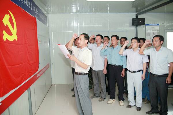 會(huì)議最后,汪書記帶領(lǐng)項(xiàng)目部全體黨員重溫了入黨誓詞。
