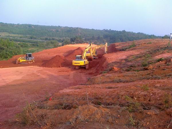 我部施工標(biāo)段全長28公里,項(xiàng)目部將在永豐和吉水兩縣分別設(shè)立一座水穩(wěn)拌合站及一座瀝青拌和站。按照業(yè)主要求,8月份完成水穩(wěn)拌合站架設(shè),10月份完成瀝青拌合站架設(shè)。項(xiàng)目部已經(jīng)定出倒排工期計(jì)劃表。目前在永豐縣的“一白一黑”兩站已經(jīng)確定,水穩(wěn)拌和站已具備架設(shè)及備料條件。吉水縣我標(biāo)段所處位置多為山地,且大部分為公益林,經(jīng)過慎重選擇后,選定了一塊約50畝的山林地作為兩站場地。但此處土方量較大,場地整平土方量經(jīng)測算約8萬方。項(xiàng)目部將充分利用晴好天氣,加班加點(diǎn),計(jì)劃10個工作日完成場地整平。