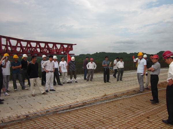 下午15:30,在大廣高速龍楊段項目辦、高駐辦相關(guān)領(lǐng)導(dǎo)帶領(lǐng)下,全線各高駐辦、施工單位主要負責(zé)人徒步參觀了我標(biāo)江口大橋施工現(xiàn)場。實地考察中,我標(biāo)項目經(jīng)理羅權(quán)針對水混凝土橋面鋪裝施工情況作了簡要介紹,并就部分施工細節(jié)問題與觀摩團進行了深入交流。