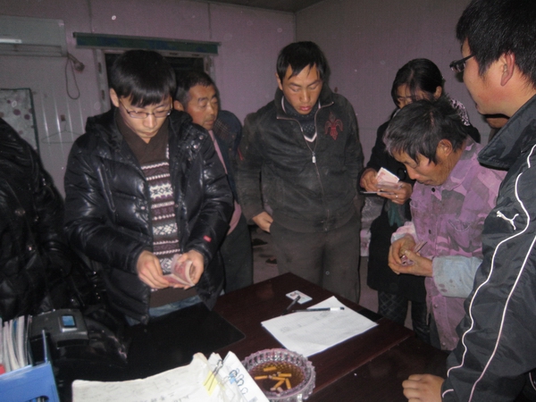 為保障農(nóng)民工合法權(quán)益,貫徹落實公司相關(guān)文件精神。徐明11標(biāo)項目于12月11晚組織綜合部、財務(wù)部、安全部以及工程部等相關(guān)人員深入施工一線開展農(nóng)民工工資發(fā)放工作。為了確保工資發(fā)放過程萬無一失,我該項目部遵循“不錯發(fā)一個,不漏發(fā)一個”的原則,嚴(yán)格執(zhí)行弄農(nóng)民工工資發(fā)放程序:核對身份證—簽字確認(rèn)—領(lǐng)取工資,并對整個過程進行了攝像監(jiān)督,有條不紊的順利完成了工資發(fā)放工作。