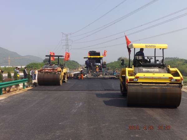 為保證此次試驗段攤鋪順利進(jìn)行,項目部于4月25日晚召開專項會議,對各施工班組及機(jī)械操作人員進(jìn)行詳細(xì)的技術(shù)、安全交底,對整個施工過程的各個環(huán)節(jié)進(jìn)行了詳細(xì)確認(rèn),將責(zé)任、要求細(xì)化到個人。會議強(qiáng)調(diào)在施工過程中要嚴(yán)把質(zhì)量關(guān),瀝青出場溫度、到場溫度、攤鋪溫度、初壓溫度、復(fù)壓溫度、終壓溫度等相關(guān)指數(shù)均要在設(shè)計范圍內(nèi),同時,安全保障措施等也要控制到位。