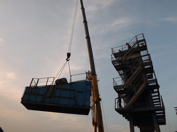 G205改建路面項目完成拌和站主樓吊裝 發(fā)布時間:2013年07月19日 來源:G205改建路面項目 發(fā)布人: 作者:楊艷峰 瀏覽:2697次 7月17日下午3時,伴隨著響聲震天的鞭炮聲,兩輛大型吊車在安全技術(shù)人員和作業(yè)人員的通力協(xié)作下,安全有序地進行拌和站主樓的吊裝。經(jīng)過全體施工人員的努力,于當日下午6時30分完成拌和站主樓的吊裝。
