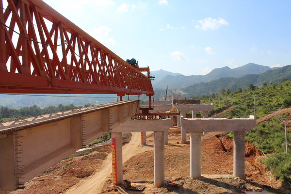 昌寧高速C5標完成龍坊高架第一片40米T梁架設 發(fā)布時間:2014年09月18日 來源:昌寧高速C5標 發(fā)布人: 作者:王振堂 瀏覽:2748次 9月18日上午9時18分,昌寧高速公路C5標龍坊高架第一片40米T梁順利架設成功,標志著作為全線控制性工程的龍坊高架橋進入了上部施工階段,極大地提振了項目部全體員工和參建隊伍的戰(zhàn)斗精神。